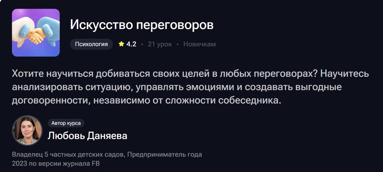 «Искусство переговоров» — это не про то, чтобы научиться побеждать. Это про то, чтобы научиться договариваться. Так, чтобы обе стороны выходили с результатом — и хотели работать с вами снова. И снова. И снова.